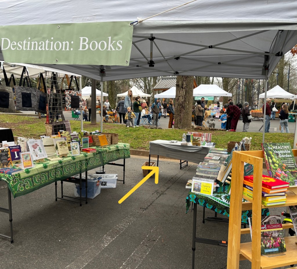 This potting table looks forward to our next outing, which is Saturday morning, April 18th at the Carter Center Freedom Farmer’s Market.
