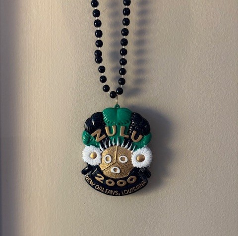 A case in point. This necklace belongs to Murray’s stepson Sean who was cleaning out closets in his last trip home. Most things were tossed but unsolicited he kept this necklace from his trip to Mardi Gras when he was in high school.