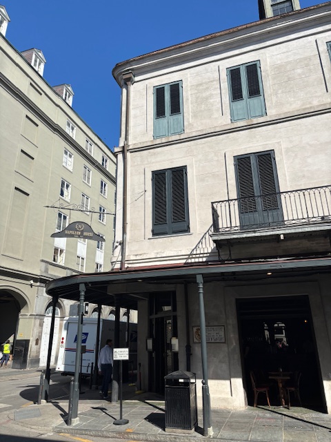 The Napoleon House in the French Quarter. Originally built in 1794 and expanded in 1814 to accommodate Napoleon Bonaparte in exile. It was part of Murray’s walking tour. Dawdy refers to the restaurant as “among the most patinated in the French Quarter.”