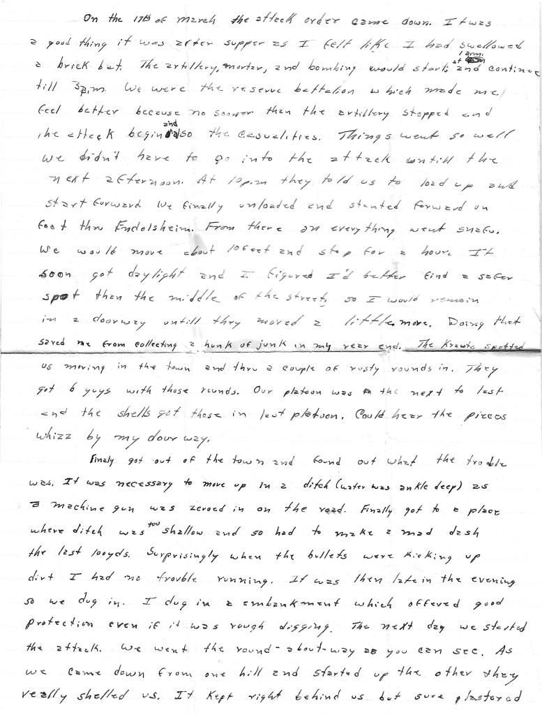 Most of the source materials for my book have been transferred to the World War II Museum in New Orleans including my father’s April 26, 1945 account of the battle experiences in the Colmar Pocket.