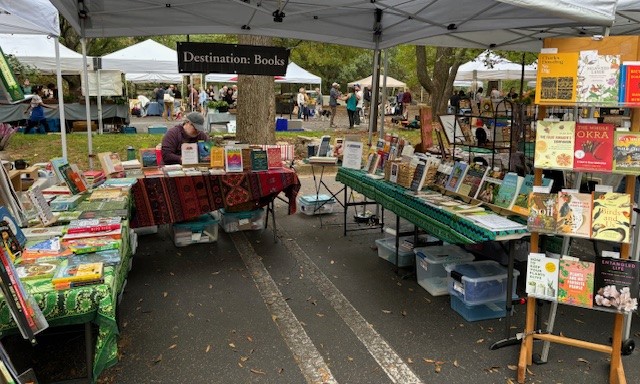 During the pandemic Mark joined my retirement gig—the pop-up book stall Destination Books. From 2021 to 2024 we sold together at the Carter Center’s Freedom Farmers Market, weathering hot humid summers and chilly late fall mornings. (That’s Mark in booth picture.) the All the time he was generous in showing me the ropes in dealing with publishers and book distributors. During the lulls in customer traffic, we chatted about books, travel, and films. He even let me borrow his DVDs of films by director Werner Herzog, so later I understood the origins of his strong Klaus Kinski-like reaction when some boor photographed a book only to (presumably) order it online. (“GET OUT OF HERE, I WILL NOT SELL YOU A BOOK EVEN IF YOU BEGGED ME!”).